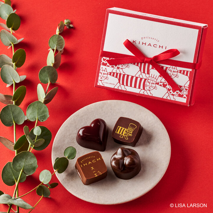 NEW ■商品名:【キハチ×リサ・ラーソン】ボンボンショコラ 4個入 一粒一粒の個性を楽しむ、なめらかなくちどけのボンボンショコラ。キャラメルには、KIHACHIロゴ入りのパティシエ帽をかぶったリサ・ラーソンの人気のネコ、マイキーのデザインが入っています。 ・フランボワーズ ・キャラメル ・黒胡麻 ・ジャンドゥーヤ