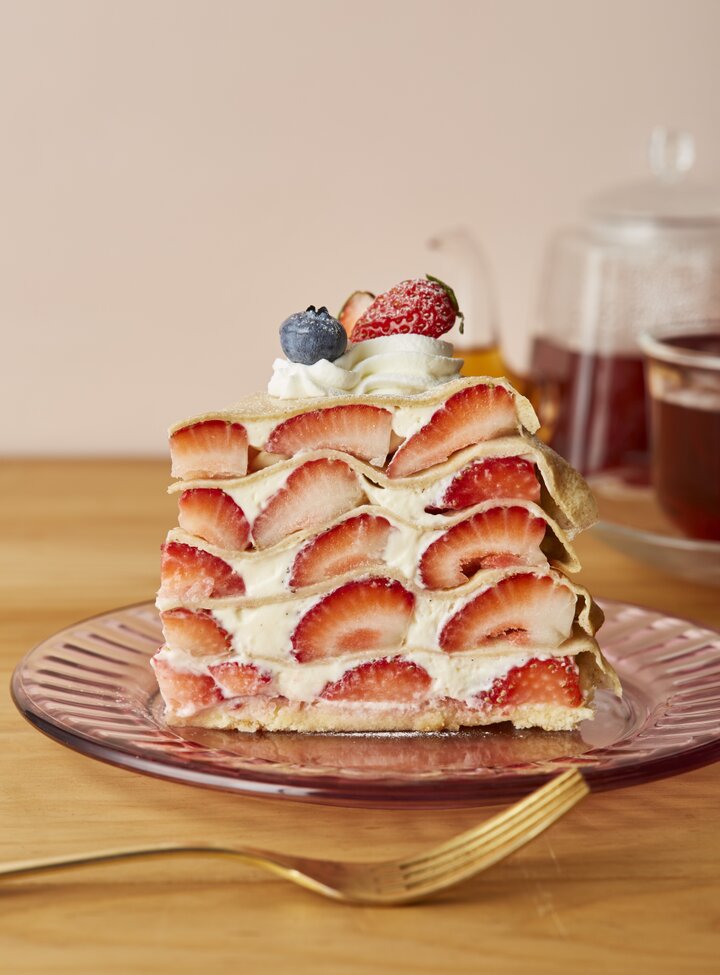 毎年、苺が美味しくなる季節に発売している「苺のミルクレープ」は、旬の苺がたっぷり楽しめるプレミアムな一品です。 一枚一枚お店で丁寧に焼き上げる発酵バターとライ麦粉のクレープ、ディプロマットクリーム、旬の苺をたっぷり5層仕立てに。甘酸っぱくジューシーな苺の果実味が存分に味わえる、特別なミルクレープに仕上げています。 【PREMIUM CLASSIC】季節限定 ■商品名:苺のミルクレープ ■販売期間:①2022年12月26日(月)~2023年3月1日(水)、②2023年3月30日(木)~5月10日(水)※数量限定 ■販売店舗:全店 ※表参道のみ、1/15~3/1は実施なし 表参道は、1/15~3/1の期間中、「苺のミルクレープ」に代わって店舗限定のスペシャルな苺のクレープが登場予定です。