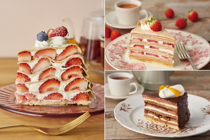 苺×ミルクティー、苺×ピスタチオ、オレンジ×チョコレートなど、冬の新作ミルクレープも