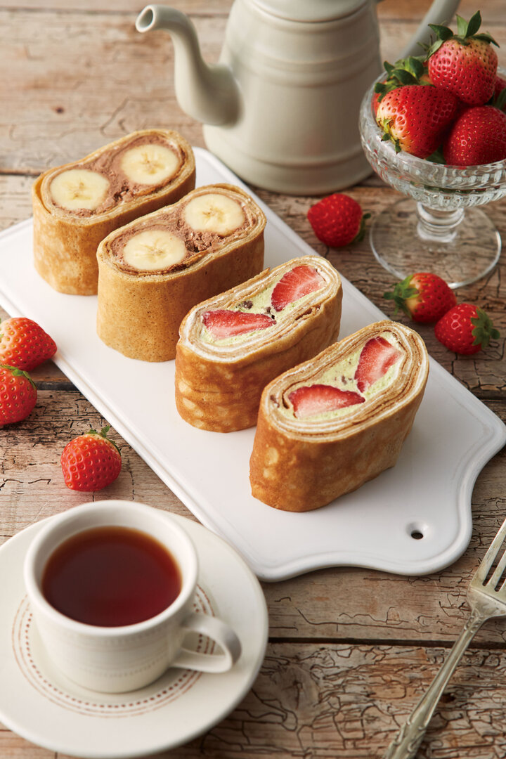 「クリームクレープロール チョコ&バナナ」は、バナナとチョコレートクリームをもちもちクレープで丁寧に巻きました。ヘーゼルナッツプラリネの香ばしさがアクセントです。 また「クリームクレープロール 苺&ピスタチオ」は、ふんわりとした口当たりの香り高いピスタチオホイップと苺をもちもちクレープで丁寧に巻きました。チョコレートの食感がアクセントになっています。 NEW ルクア大阪限定 ■商品名:クリームクレープロール チョコ&バナナ ■販売期間:2023年2月2日(木)~3月1日(水) ■販売店舗:アフタヌーンティー・ラブアンドテーブル ルクア大阪 NEW ルクア大阪限定 ■商品名:クリームクレープロール 苺&ピスタチオ ■販売期間:2023年2月2日(木)~3月1日(水) ■販売店舗:アフタヌーンティー・ラブアンドテーブル ルクア大阪 ※2022年12/26~2023年2/1の期間中は、昨年も好評だった「クリームクレープロール ストロベリー」を販売します。 * * * このほか、ルミネ新宿、ルミネ横浜、静岡パルシェ、ルクア大阪の4店舗限定で季節のパスタも登場します。詳細は公式サイトをご覧ください。 冬の新作ミルクレープを、この機会にぜひ味わってくださいね。