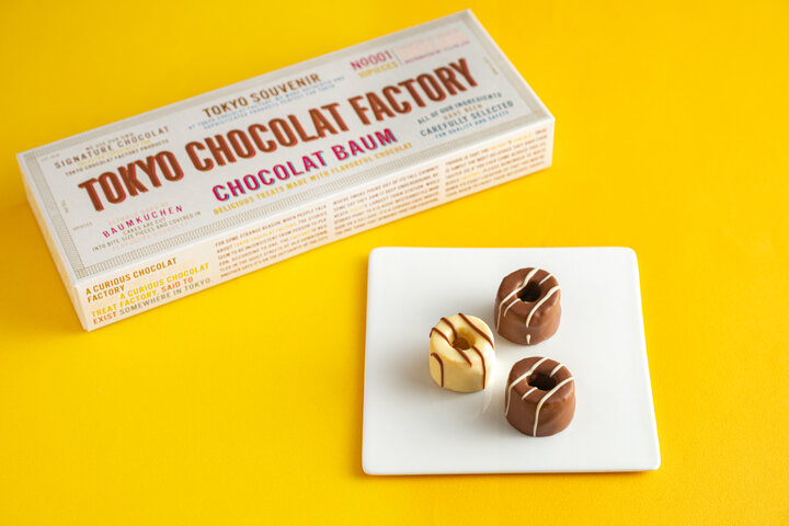 “東京”のどこかにあるチョコレート菓子工場というストーリーをコンセプトに、遊び心感満載のスイーツに出会える「東京ショコラファクトリー」。定番の「ショコラバウム」は、おしゃれなパッケージと手ごろな価格も魅力。ひと口サイズのバウムクーヘンをホワイトチョコとミルクチョコでコーティングした、ロリポップキャンディのようなデコレーションがキュートです。