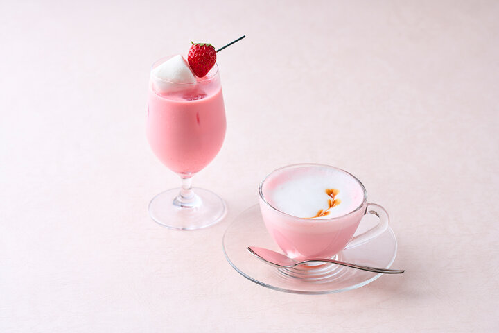 いちごミルクといちごラテのアフタヌーンティー限定ドリンク2種を含むフリーフロー