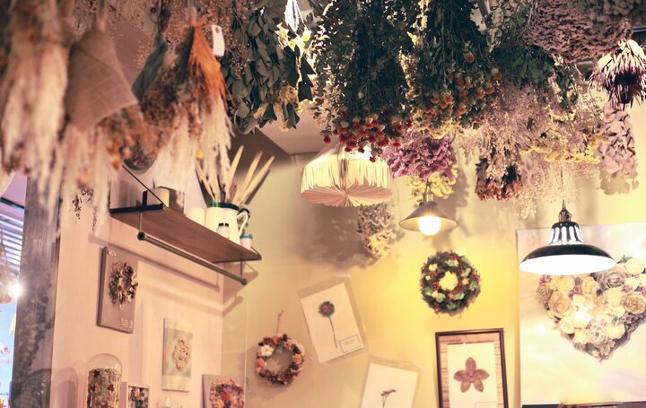 名古屋駅から続く高架下にお花屋さんが営むカフェを見つけました。店内はドライフラワーでいっぱいの空間となっていて、お花をあしらったドリンクやドーナツなども。お店の隣にはドライフラワー専門店もあり、アンティーク色に彩られたドライフラワーの世界へと誘ってくれますよ。
