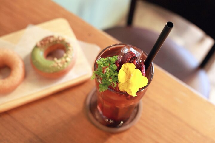 ドーナツやドリンクにもお花をあしらって
