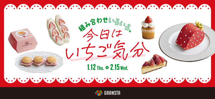 東京駅構内のエキナカ商業施設「エキュート」「グランスタ」では、2023年1月12日から2月15日までの期間、「今日はいちご気分」を開催しています。 期間中は、甘酸っぱいいちごと相性の良い生クリームやカスタード、あんこ、チョコレートを組み合わせた、旬のいちごを存分に楽しめるスイーツやパンなど計29品が大集合。期間限定、東京駅限定のスイーツも登場します。