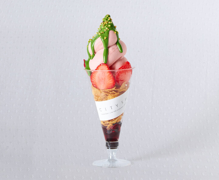 東京駅限定・NEW 「福岡県産あまおうとピスタチオソースのパルフェ」 CITYSHOP(グランスタ東京/1F改札内) 採れたてのあまおうを使用したフレッシュで果実感のあるソフトクリームに、生クリームを使用し濃厚でコクのあるピスタチオクリームソースをかけた贅沢な一品です。 底に忍ばせたミックスベリーの酸味がアクセントです。 販売期間:1/12〜2/15