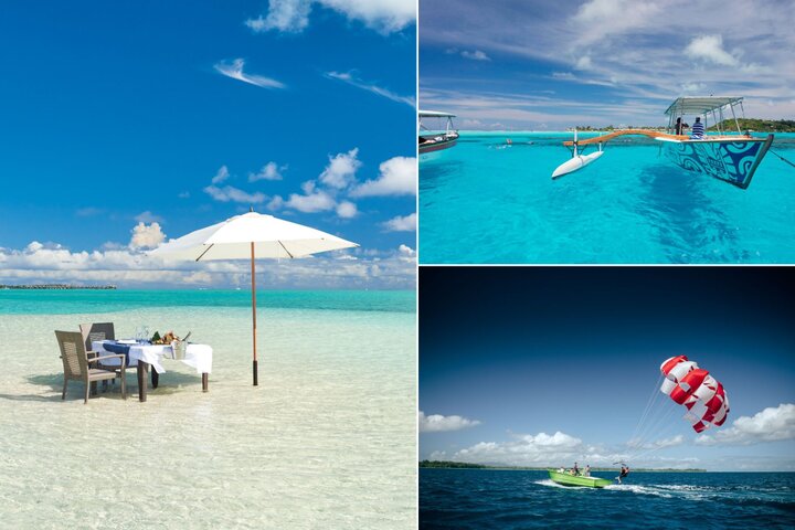 (左・右上)モツピクニック ※左©Conrad BoraBora Nui、右上©エア タヒチ ヌイ、(右下)パラセーリング ©Myles McGuinness