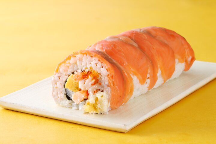 【エキュート限定】 ■力蔵サーモンロール Sushi力蔵(上野) 3種のサーモン(銀鮭、サーモントラウト、アトランティックサーモン)が入った恵方巻です。