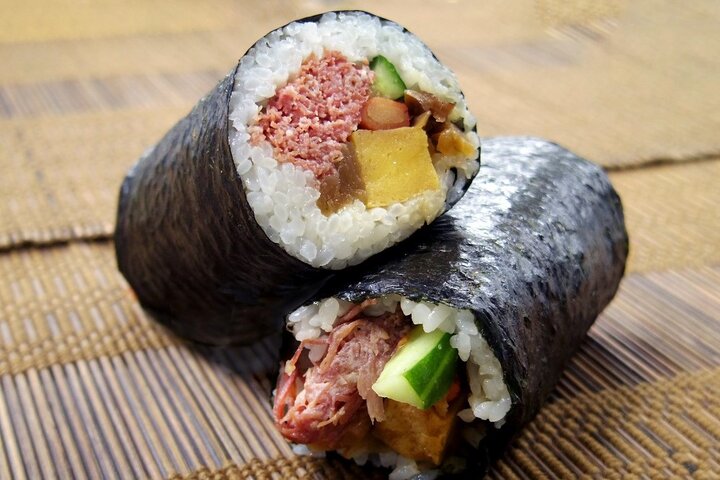 ■プルコギキンパ カンナムキンパ(日暮里・立川) 甘いタレを使用した韓国版牛すき焼き「プルコギ」を具材に盛り込みました。