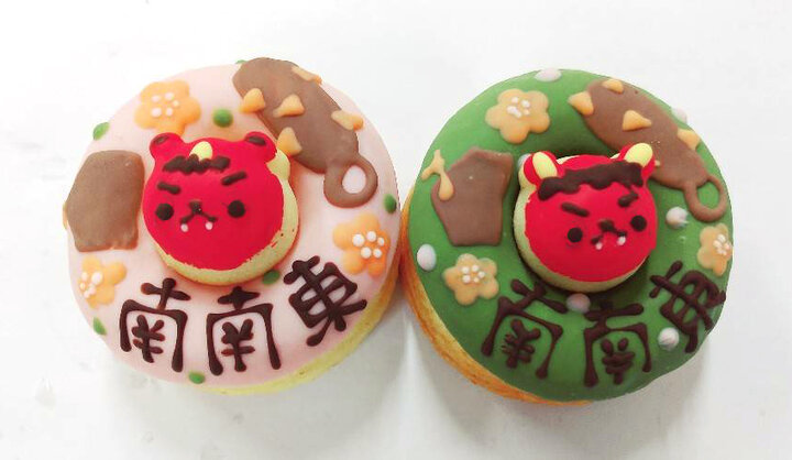■恵方☆クマゴロン シレトコファクトリー(上野) 今年の方角は南南東。一口で鬼退治♪ いつものクマゴロンが鬼に扮し、丸かじりで福を呼ぶかわいらしいドーナッツです。
