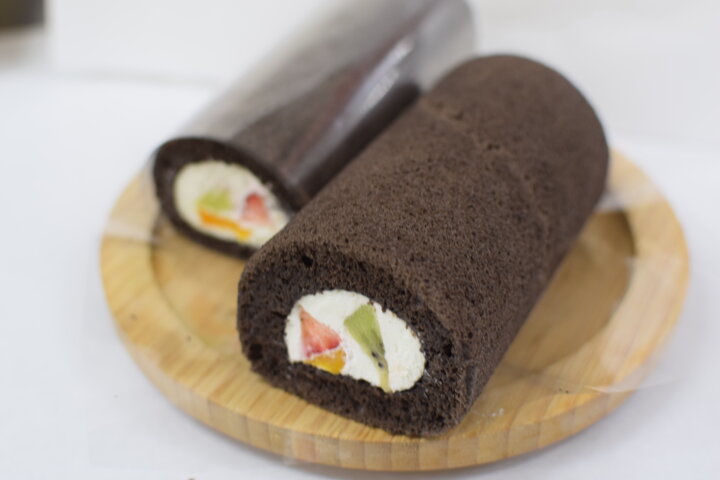 ■恵方巻ロール 柿の木坂 キャトル(上野) 3種類のフルーツ(苺・キウイフルーツ・バナナ)と生クリームとカスタードクリームをチョコレートスポンジで巻き上げました。