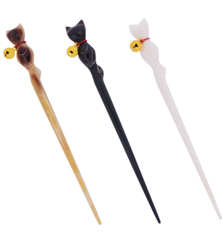 水牛角猫一本簪(茶猫/黒猫/白猫) <かんざし屋wargo>(イーストヤード4階) ※通年販売商品 猫好きの心をつかんで離さない、ちょこんとお座りしたデザインのかんざし。水牛の角でできており、一本一本模様の出方に個性があるため、選ぶのが楽しいかんざしです。