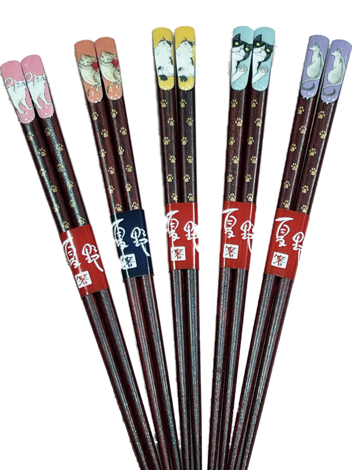 写真上から 1:オリジナル天削ねこ箸 2:錫で出来た猫の箸置き <銀座夏野>(イーストヤード4階) ※通年販売商品 愛らしい表情のねこと足跡のデザインがポイントの箸と、様々なポーズがかわいい猫の箸置きです。お箸には別途料金で名入れが可能です。