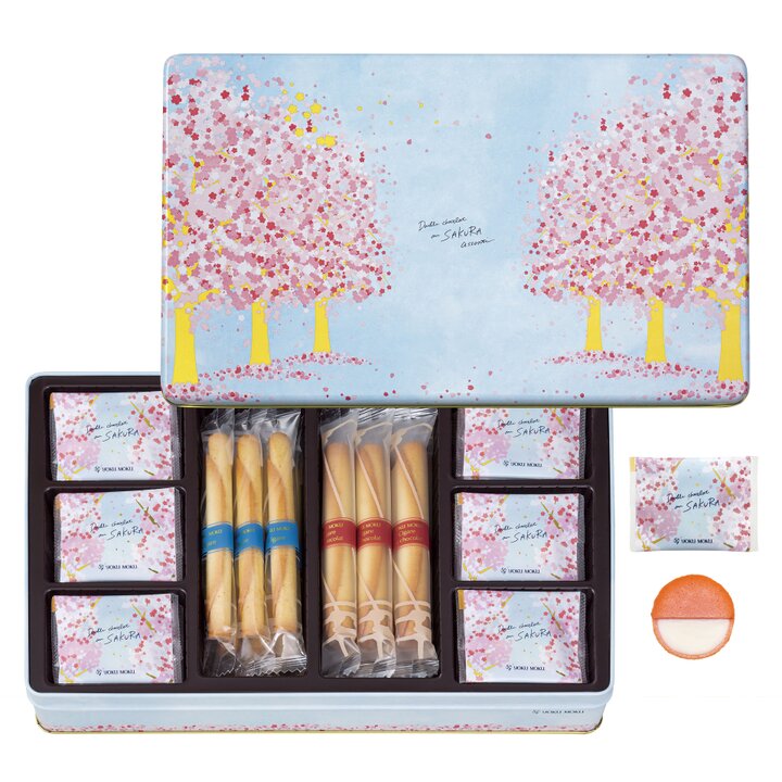 春は新生活シーズン。心躍る人生の門出に寄り添い、そっと背中を押してくれるようなお菓子を届けたい。そんな想いから、春の門出を桜の並木道で送り出すイメージでパッケージを一新しました。 こだわりは、受け取り手によって様々な解釈ができる多面的なデザイン。3種類のラインナップのうち24枚入の缶は、桜並木を真下から見上げたようにも、川に花びらが舞い落ちているようにも捉えられるデザインに仕立てました。 友人へのプチギフトや、お世話になった方へ贈るお祝いの品、季節の手土産など様々なシーンにぴったり。一目見ただけで春の訪れを感じられるデザインが、明るい気持ちを運んでくれます。