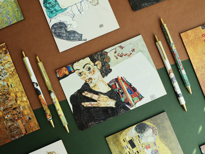 上野の東京都美術館で2023年4月9日まで開催されている展覧会「レオポルド美術館 エゴン・シーレ展 ウィーンが生んだ若き天才」では、エゴン・シーレとクリムトの名画6作をモチーフにした計8種の新作アートグッズを、東京都美術館ミュージアムショップとオンラインショップにて販売しています。