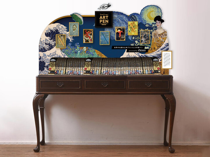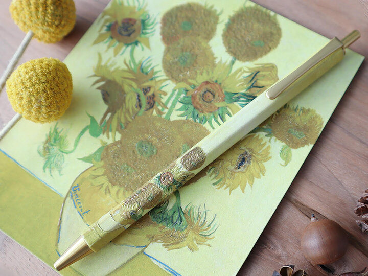 「PENONタッチミー!アートペン」は、独自のプリント技術を用いてペン木軸に薄いインクの重なりをつけ、原画のタッチに近い立体加工を施した木製ボールペンです。 ペンの木軸には森林認証を受けた木材を使用、パッケージにはプラスチック不使用、使用済みの芯を回収してリサイクルをする循環型の仕組みを構築したサステナブルなアートグッズとして、全国のミュージアムショップを中心に取扱いを広げている人気商品です。 今回のポップアップでは、限定商品の展示を含むアートペンのフルラインナップ全42柄が登場します。 (写真) ・PENONタッチミー!アートペン ゴッホ ひまわり ・PENONタッチミー!ポストカード ゴッホ ひまわり