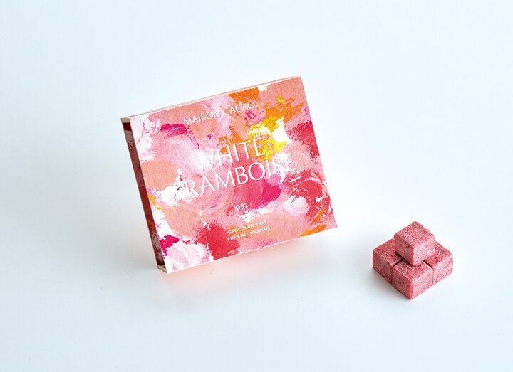 NEW ■アロマ生チョコレート ホワイトフランボワーズ お花のような華やかな香りと優しい甘さの口溶けのよいホワイトチョコレートに、あまずっぱいフランボワーズを合わせた一品です。北海道帯広の山間で育てられる国産フランボワーズは、味がギュッと詰まって濃厚なあまずっぱさと香りを持ちます。華やかに広がる味わいを紅茶やお酒とともに楽しんで。 販売期間:2/22~3/14