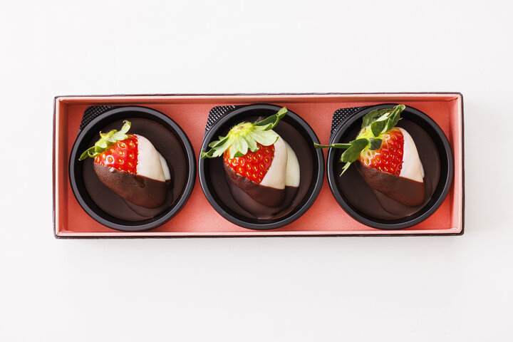 ■ショコラフレーズ3個入り 国産苺を2色のチョコレートでコーティング。みずみずしい苺とチョコレートが相性抜群です。 販売期間:販売中~3/14 ※エキュート品川でも販売