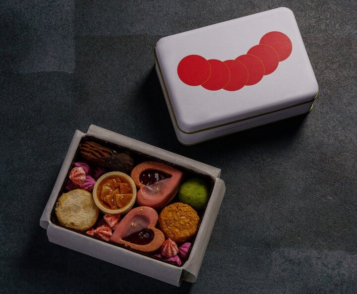 NEW ■紅屋のクッキー缶 S 沖縄黒糖や抹茶、小豆、黒胡麻、米粉など日本ならではの豊かな素材を使って作られたクッキー缶です。クッキーだけでなく、最中のフロランタンやフルーツのメレンゲなど、食感や口どけも様々な焼き菓子をぎゅっと詰め合わせました。ショコラを使用した冬季限定品です。 販売期間:販売中~3月末 ※エキュート品川でも販売