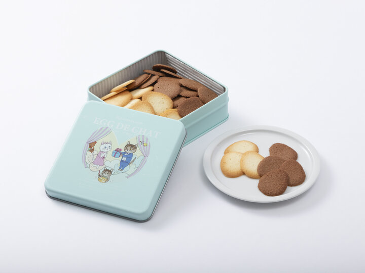 ■エッグドシャ【プレーン&ショコラ】 小さな卵型のクッキーに優しさと美味しさを込めて、ホワイトデーをモチーフにしたデザインが描かれた缶の中にはプレーンとショコラの味わいのエッグドシャを詰め込みました。 販売期間:2/27~3/14 ※エキュート日暮里でも販売