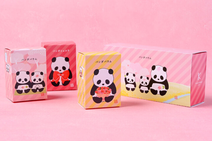 NEW ■さくらパンダ3個セット ~さくら、花束、リボン~ しっとりと柔らかいバウムクーヘン生地に、かわいらしいパンダのカットを施した「型抜きバウム」。女性に喜ばれるかわいらしい季節のパンダ3個入りが登場します。 販売期間:2/15~3/14