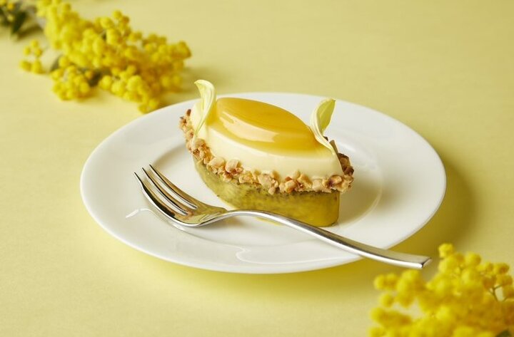 伝統的なフランスのデザート、ヴァシュランをブラッスリー・デュ・ケ風に仕立て、アーモンドのスポンジ生地にホワイトチョコレートムース、グレープフルーツ果肉の層を重ね、メレンゲのお菓子で「ハッピーイエロー」を表現しました。レモンシャーベットを添えて、柑橘とホワイトチョコレートとの絶妙な味覚のバランスを楽しむことができます。 日時 : 3月1日(水)~ 5月31日(水)