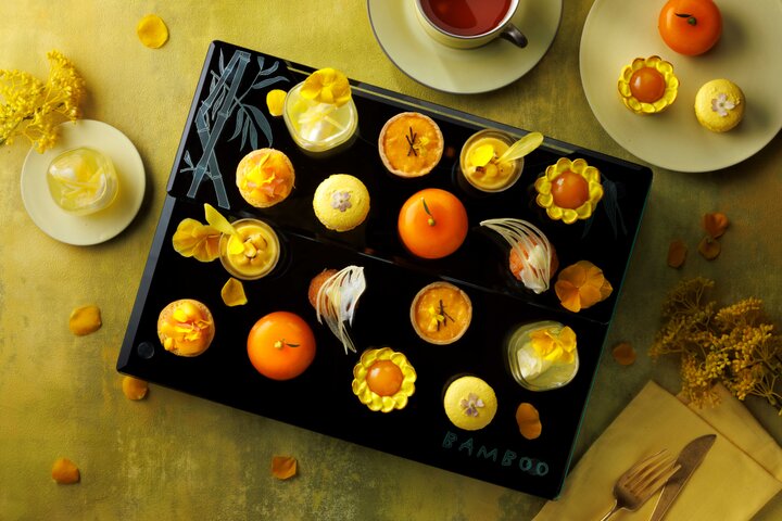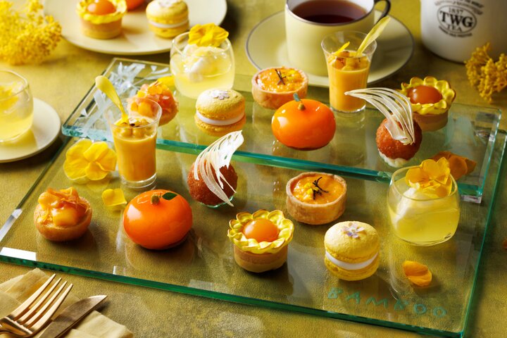 シトラスイエローアフタヌーンティー 女性パティシエたちが輝く女性のために考案した、目にも鮮やかな黄色のアフタヌーンティー。柑橘フルーツをふんだんに使ったフォトジェニックなスイーツを楽しめます。