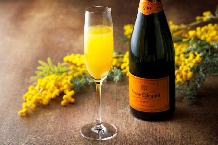 ミモザ ヴーヴ・クリコとフレッシュオレンジを使ったシャンパンカクテル。