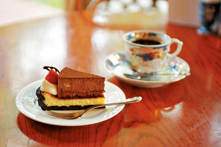 人気のケーキを味わいながらコーヒーブレイク。ケーキセット680円〜