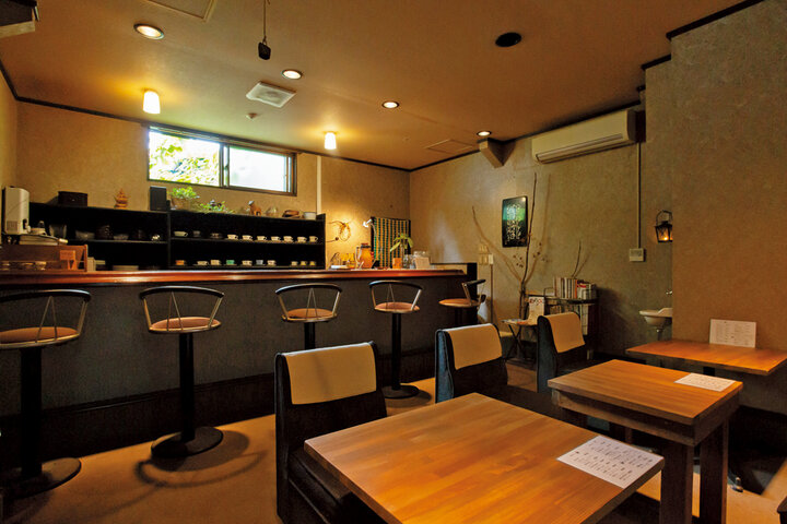 ビルの奥にたたずむ隠れ家的な喫茶店。気さくな店主との会話を楽しみに来る常連客も多いそう。メニューはネルドリップで淹れるコーヒーをはじめ、ドリンクや軽食、スイーツ。直径2.2mmの極太麺を使ったナポリタンが人気です。