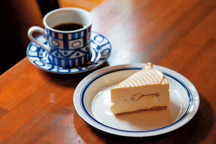 角館駅近くで40年以上続く喫茶店。手づくりのクリームチーズケーキは、濃厚ながらすっきりとしたあと味で、コーヒーとも紅茶ともよく合うと評判です。店内には店主が集めた登山アイテムやクラフト雑貨が飾られています。