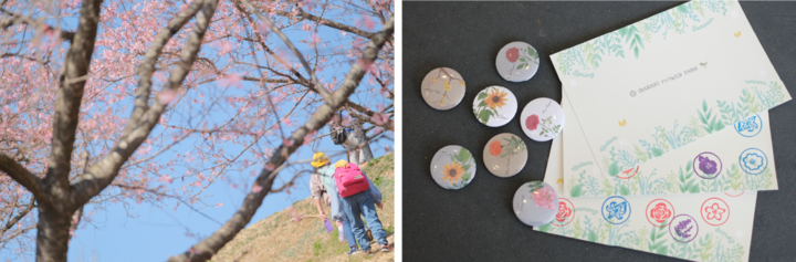 自然豊かな地域の魅力を再発見できるアクティビティ「100の体感」。広い園内やフラワーパークの花や植物を使った季節の様々な体感メニューが用意されています。 ■四季の花めぐりスタンプラリー 広い園内8か所に設置されたお花スタンプを押しながら、自分だけのポストカードを作る「四季の花めぐりスタンプラリー」を開催します。桜のスタンプを見つけたら、お花のオリジナルイラストが描かれたボタニカル缶バッチをプレゼント。お花見をしながら、陽だまりの森を楽しむことができます。