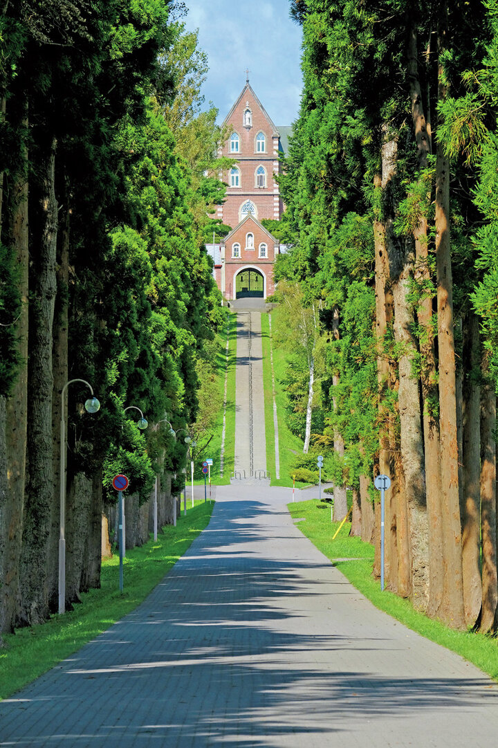 並木道の向こうに見えるゴシックの建物が印象的「燈台の聖母 トラピスト修道院」