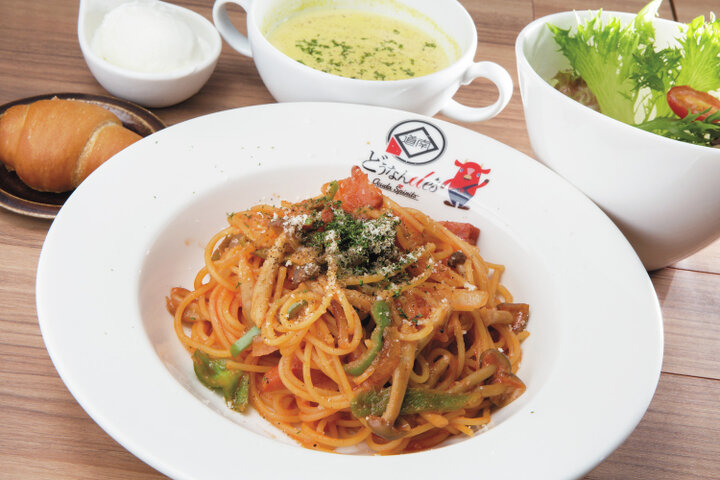 どうなんde’s特製ナポリタン980円。プラス300円で塩パン、サラダ、スープ、ジェラートが付いて、お得