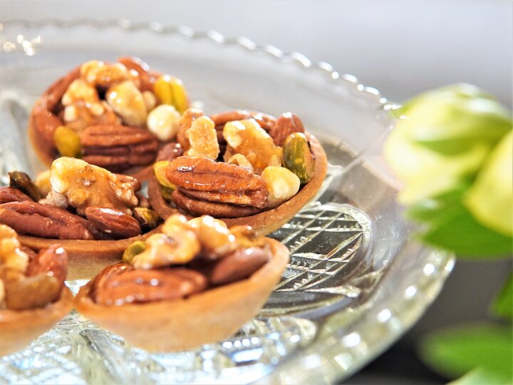 ショーケースはチョコレート生地にオレンジピューレをしのばせた「タルトジーナ」や7種類ものナッツを詰め込んだ「タルトナッツフォレスト」など、オリジナルレシピのタルトが彩ります。ギフト箱に入れれば気の利いたギフトにも。
