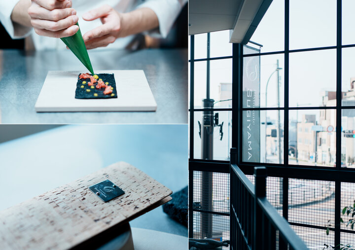 修業時代には、パティスリーで働いた経験も。前菜からデザートまで、コースの全てを自身で作ることを考え、当初はスイーツを学ぼうと地元のパティスリーの扉を叩きました。しかし、現在ではその経験がデザートだけでなくコース全体に反映されているといいます。同店のコースでは、クレープやタルト、パンナコッタなどスイーツを連想させるようなものを料理として昇華させ、杉山さんならではのスタイルで食事の時間を楽しませてくれます。 県外のレストランでも研鑽を積んだ杉山さんですが、独立の地は生まれ育った金沢でと決めていました。自身にとっての金沢の風景がこの交差点だったと話し、このビルへの出店はまさに理想的だったとか。繁華街の中心からは少し離れたこの場所に、わざわざ訪れる価値があると知る感度の高い人たちが、今日も「Ristorante SUGIYAMA」の席を埋めています。