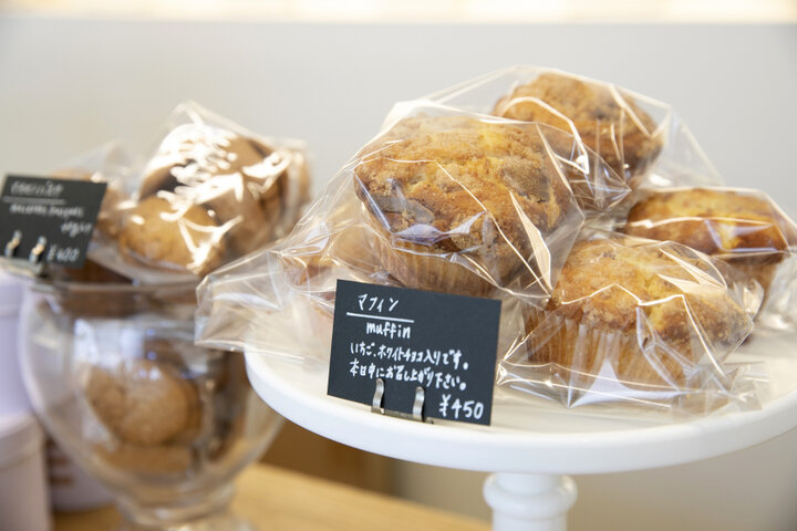 ケーキのほかに、マフィンやスコーンなどの焼き菓子も販売しています。焼き菓子もケーキと同じく素材にこだわり、ていねいに作られており、伝統的なスタイルの焼き菓子や、季節のフルーツを加えてアレンジしたものなど数種が並びます。 お皿がなくても食べられる焼き菓子は、そばにある代々木公園でひと休みするときのおやつにぴったり。天気のいい日は、ドリンクと一緒にテイクアウトして、のんびりおやつタイムを過ごしましょう。