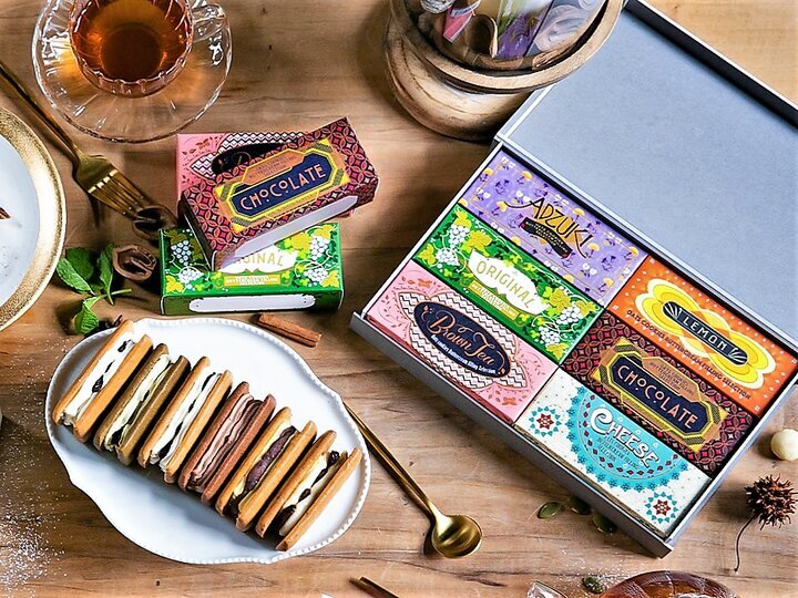 ほんのり塩味を効かせたオーツクッキーを使ったバターサンドは、アールグレイやあんバター、ほうじ茶など約10種類。ジャンドゥーヤのクリームをココアパウダーのクッキーでサンドした「ジャンドゥーヤ」は赤レンガ倉庫だけの限定販売です。アールヌーボ調のパッケージも素敵でギフトにしても喜ばれます。