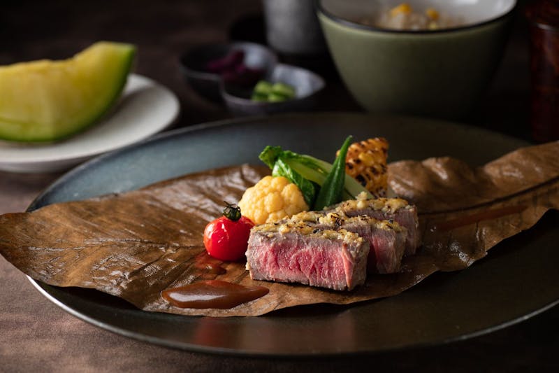 食事は、調味料から野菜まで地元食材を取り入れるとともに、シェフおすすめの上質なお肉料理からお酒に合うおつまみメニューなど、様々なシーンで京フレンチを堪能することができます。