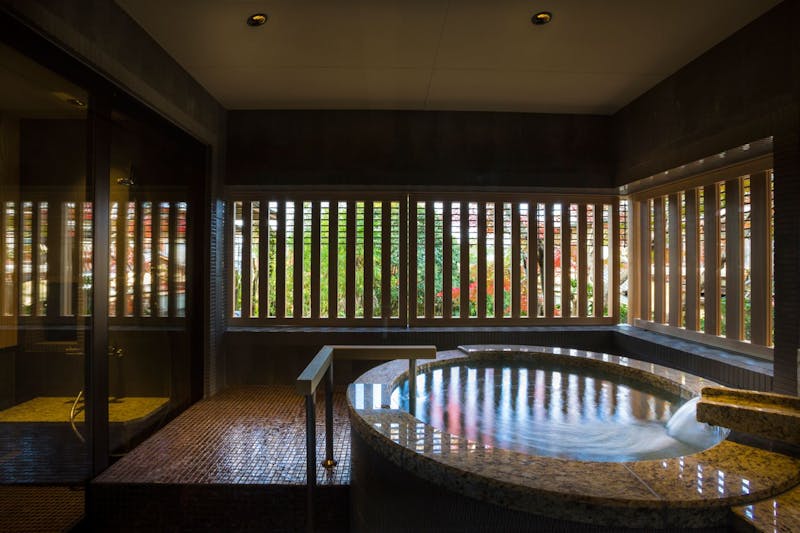 お部屋は露天風呂付テラスを備えた客室をはじめ、無双窓の向こうに京都の町並みが広がる半露天風呂、ゆとりある内風呂を配した客室などバリエーション豊かな全13室。肩まで浸かれる深さと広々とした湯船に身を任せ、京の風を感じながら、自由気ままに湯を楽しむことができます。