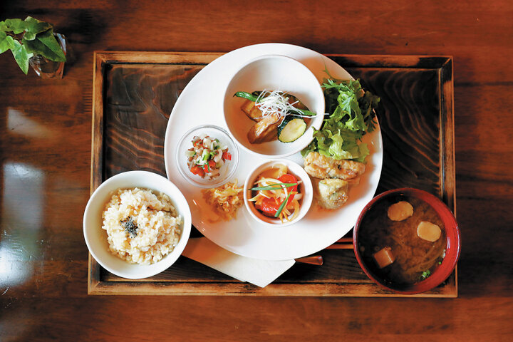 動物性のものを使わず、マクロビオティックをベースにした料理が味わえるカフェ。県内の食材を中心とした人気のじみじみ定食や、植物性の素材で作ったスイーツはやさしい味わいでホッとすると評判です。 また、お店で使っているオーガニック食材や地元作家の木工雑貨も販売しています。