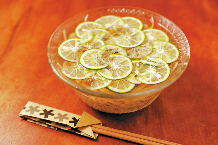 見た目も涼やかな手打ちのすだちそば「而今庵」