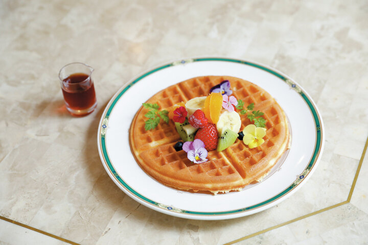 フルーツとエディブルフラワーをのせたフルーツブーケワッフル715円
