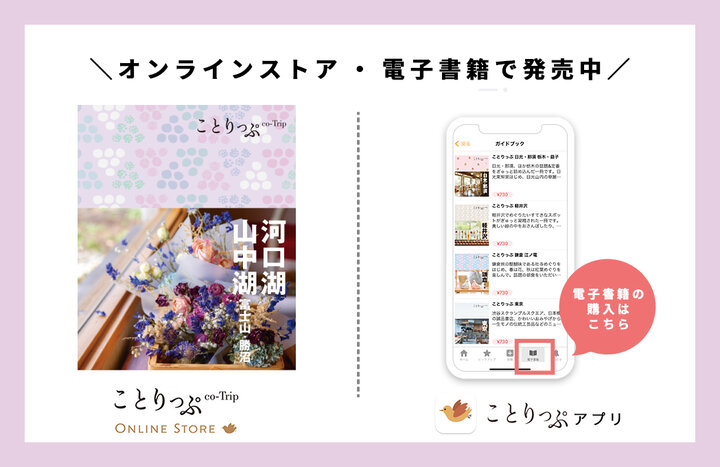 新しくなった「ことりっぷ河口湖・山中湖」では、こちらの記事のほかにも魅力溢れる河口湖・山中湖の今を紹介しています。ことりっぷオンラインストアのほか、ことりっぷアプリの電子書籍をぜひチェックしてみてくださいね。