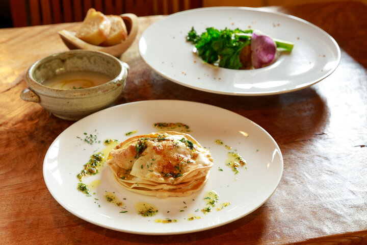 こちらのお店では、イタリアのレストランで修行を積んだ笹本広大さんが、地元・津久井周辺の食材を使って作る地産地消イタリアンが味わえます。 自家栽培のハーブやご近所の農家さんが作る野菜に加え、卵や牛乳も近隣の養鶏場や牧場から仕入れています。その時々の旬の素材を使うため、食材を見てメニューを考えることが多いのだそう。