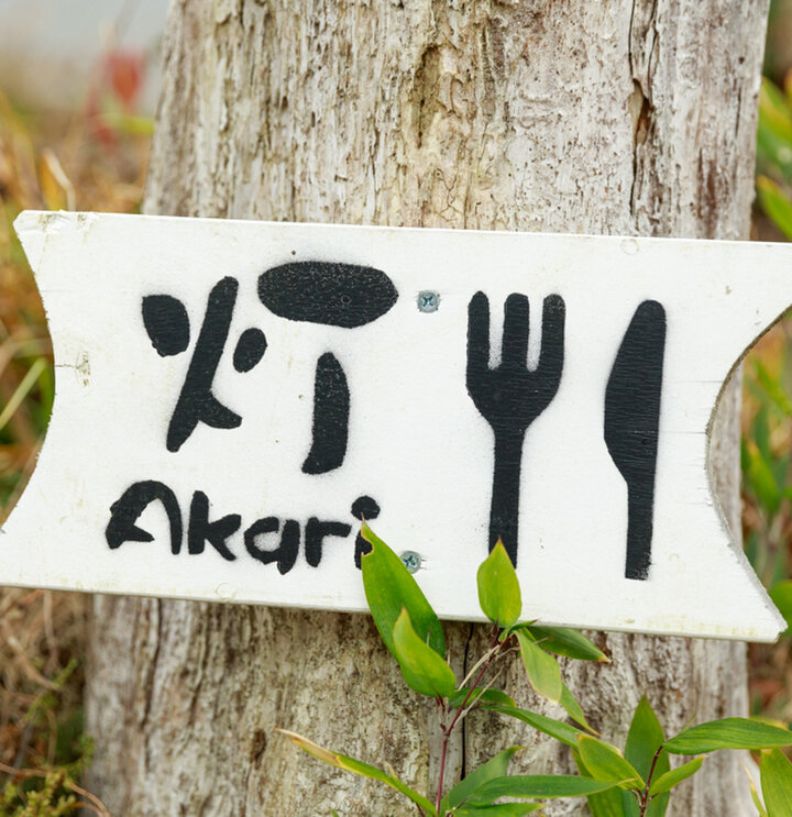 豊かな水をたたえる津久井湖の湖畔に建つレストラン「灯」へは、JR橋本駅からバスに揺られて30分ほど。中沢バス停で下車し、民家や畑の間の細い通りを進んでいくと、かわいらしい平屋の一軒家が見えてきます。
