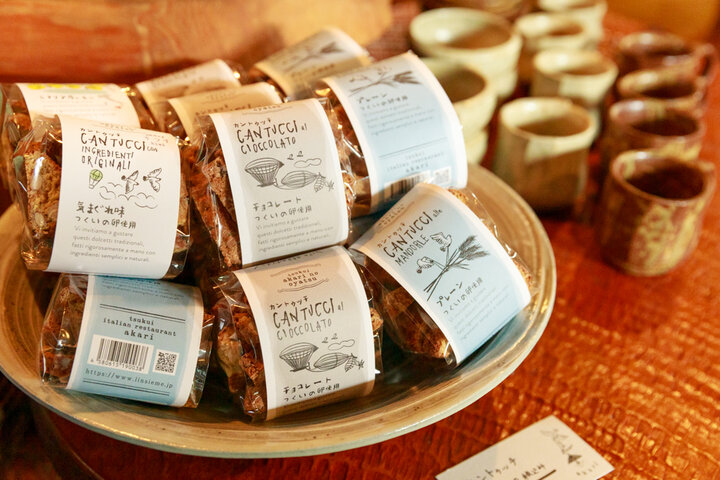 お店ではおみやげ用に、イタリアの伝統的な焼き菓子であるカントゥッチやブルッティマブオーニも手作りしています。 ブルッティマブオーニは香ばしくて軽い食感、カントゥッチは固くて噛みごたえがあり、コーヒーや甘いワインに浸して食べるのがおすすめだそう。プレーンやチョコレート、アーモンドなど、どちらも数種類の味をそろえています。 〜〜〜〜〜〜〜〜〜〜〜〜 いかがでしたか? 夏には、ウッドデッキのテラス席も利用できるようになるとのこと。のどかな湖畔のレストランでのんびり食事を楽しめば、ちょっとしたリゾート気分が味わえそうですね。