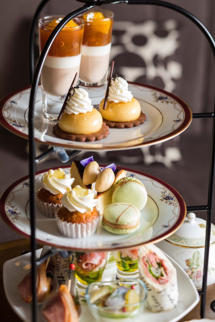 さらに、食べ応えのある“ローストビーフのサンドイッチ”や、西東京産野菜を使用したスープなどシェフおすすめのセイボリーも並びます。 【下段目】セイボリー 紅茶鴨と長葱、グリーンアスパラガスと生ハム、ローストビーフのサンドイッチ、ニシンのマリネ ディル風、西東京野菜のスープ 【スコーン】プレーンと紅茶のスコーン、ベリージャム、クロテッドクリーム