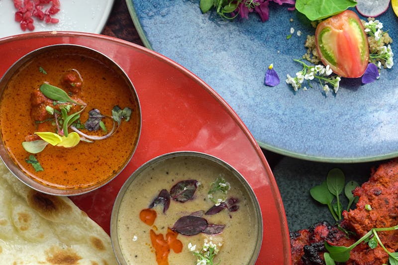 ランチブッフェでは、スパイスの効いた本場インドカレー、リッチな味わいのバターチキンカレー、栄養価の高いスーパーフード、ケールを使用したグリーンカレーなど4種類のカレー、ジューシーなタンドリーチキン、全国各地より毎日届く野菜を使用したヴィーガンサラダをはじめ、各種デザートがそろいます。