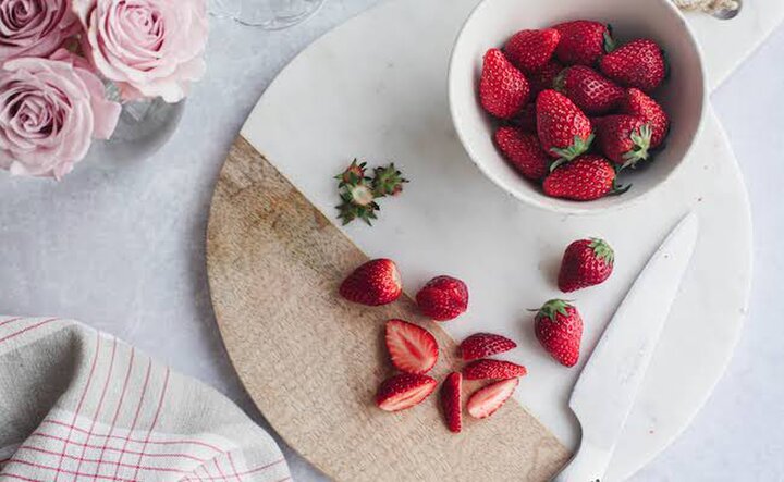 10.イチゴをお好みの大きさにカットする。
